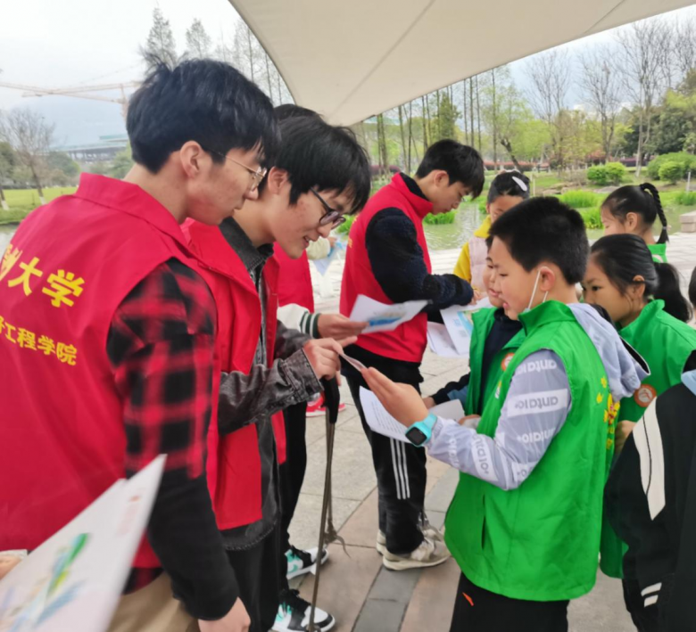 本次活动还邀请了温州大学的大学生志愿者同学来进行科普。河流观察活动开始前,大学生志愿者向到场的同学和家长们介绍了关于世界水日、中国水周的知识,还将河流的生态知识进行了科普。同学们非常认真的听讲并且不断的思考提问。知识讲解环节结束后,就开始了正式大手拉小手,一起做检测的环节。在大学生志愿者的指导下,温州大学城附属学校四六班的同学们迅速掌握了检测软件,并且他们分组来到河流旁边观察。河流是否清澈,河滩有没有垃圾,河水有没有自由流淌,河岸两边植被长势如何,有没有入侵的生物,同学们认真的为母亲河做了一次体检,还有同学用软件记录下来并向平台提交了发现的问题。观测结束后,同学们和大学生哥哥们还开展了净滩行动,他们认真的去寻找每个河滩边上能找到的垃圾和杂物,每寻找到一件垃圾,就像寻到“宝”一样。经过一个多小时的努力,同学们所在河滩周边已经非常干净了。参加本此活动的姜宸若同学表示,“这样的活动非常有意义,让我们了解了母亲河的健康状况,又懂得了保护生态环境的重要性,自己以后还会参加类似的活动。