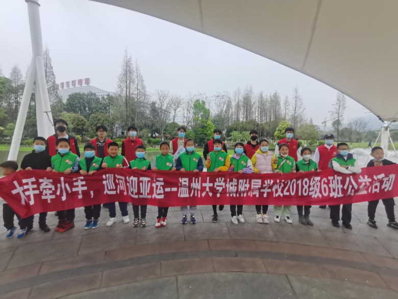 为响应省政府向全社会发出的“人人都是东道主,我为亚运做贡献”的号召,在3月22日世界水日、3月22-28日中国水周期间,温州大学城附属学校四六班的同学和家长40多人一同前往温州大学城附近温瑞塘河水域进行“大手牵小手,巡河迎亚运”的河流观察公益活动。