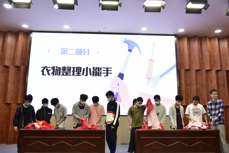 “卷死其他队”“爆炒飞扬队”“今年的冠军队”“叠衣狂人队”……新颖奇特的队名赚足了现场观众的眼球。“嘘!”随着一声哨响,紧张的叠衣服比赛开始了,现场的气氛顿时紧张起来,只见选手们动作娴熟,一气呵成,纷纷拿出超常的本领,以最快的速度将衣服叠好。