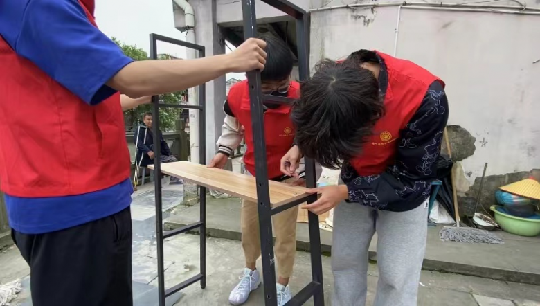 曾叔的爱人也是一位单脚残疾人士,因为身体不便的原因,他们的家中显得很凌乱。因此,温州大学单脚鞋银行志愿服务项目团队这次活动的主要任务,就是帮助他们整理和改造住宿环境,让他们的生活环境变得更加舒适。
