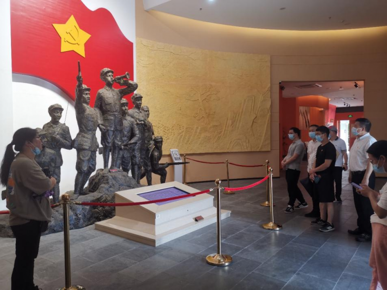 上午10时许,党员同志们到达工农红军挺进师纪念园,看到了那象征着烈士鲜血染红的红旗长廊,上面雕刻着迟浩田题写的几个醒目大字"中国工农红军挺进师纪念园"。在导游的指引与解说下,我们一边重走“北上抗日出征门”,参观中国工农红军挺进师纪念碑,一边倾听他们的革命故事,缅怀革命先辈。
