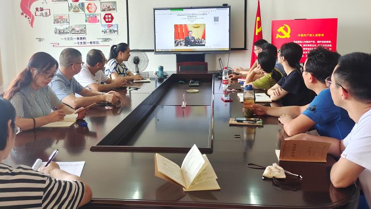 在支部书记曾蓓蕾的带领下,全体支部党员学习了《忠实践行“八八战略”坚决做到“两个维护”在高质量发展中奋力推进中国特色社会主义共同富裕先行和省域现代化先行——在中国共产党浙江省第十五次代表大会上的报告》、学习观看了《“国史讲堂”系列理论视频之“党史微课”系列》——中国共产党为什么能建立新中国、中国共产党为何能让旧中国面貌焕然一新两堂微课,重温历史,坚定入党初心,进一步加强了与会党员的党性修养。以实际行动迎接党的二十大胜利召开,为实现第二个百年奋斗目标、实现中华民族伟大复兴的中国梦作出新的更大贡献。在主题党日活动的最后,举行新党员入党宣誓和重温入党誓词仪式。 在领誓人的带领下,全体党员面向党旗,庄严宣誓!