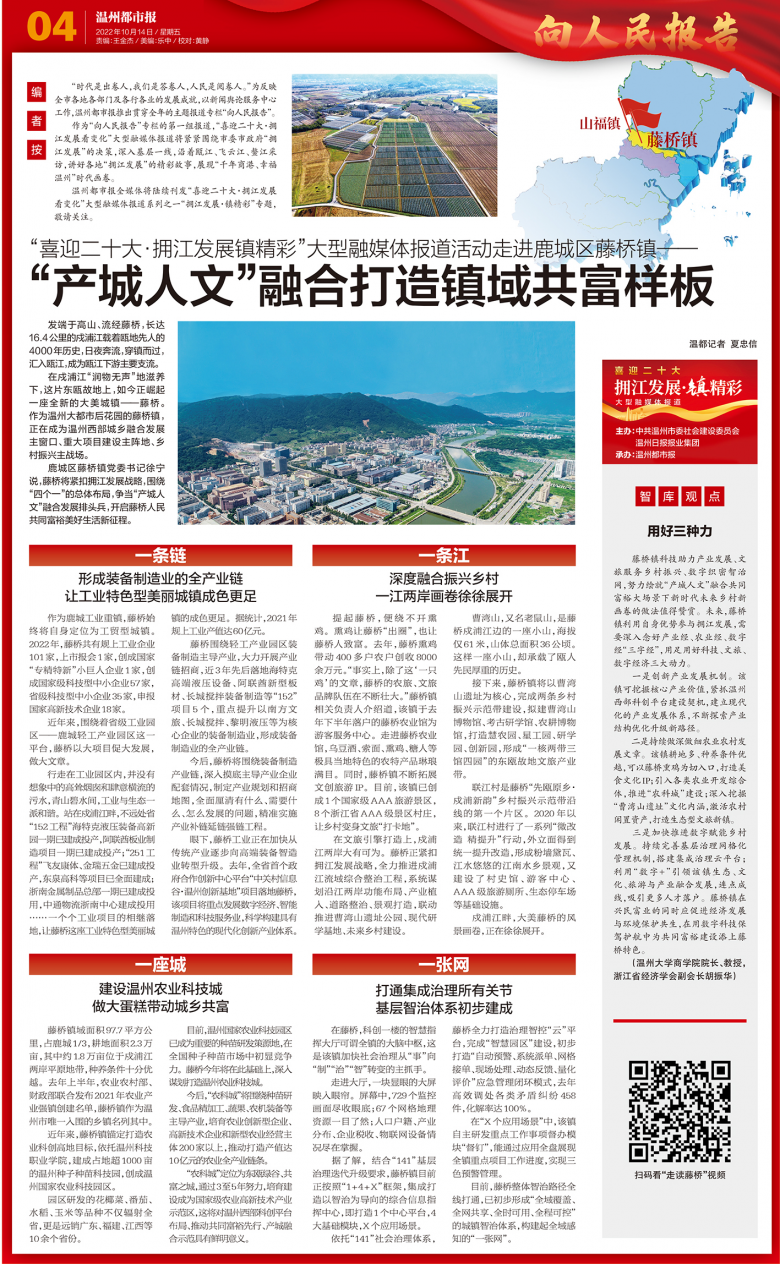 温州都市报全媒体将陆续刊发“喜迎二十大·拥江发展看变化”大型融媒体报道系列之一“拥江发展·镇精彩”专题,敬请关注。