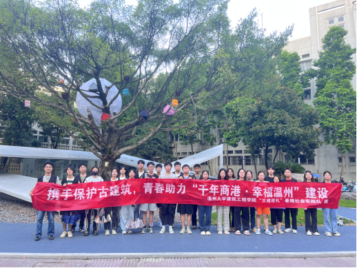 温州大学建筑工程学院古建巡礼实践队是一支探访古建筑、致力美丽乡村建设的队伍。8年来,这支队伍走过永嘉楠溪江畔的古建筑群,泰顺泗溪的古廊桥,苍南的矾山古镇;去过瓯海的梧田老街,瑞安曹村东岙文化礼堂,文成二源乡田驮村;也到访过瓯海的三垟湿地、山根村之一例。队员们在当地开展建筑测绘、建筑写生、模型制作、文创产品设计以及其他相关保护研究工作,为城市乃至国家的繁荣昌盛贡献着青春力量。