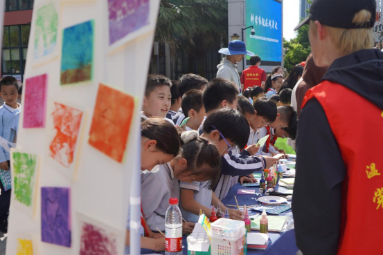 借助吹塑纸本身所具有的海绵特性,小朋友们只需用一只铅笔或小刻刀,其表面即可留下大小宽窄不同的点、线、面,快速在底版上留下各种奇妙的肌理。建筑工程学院学生们引导孩子们充分发挥想象力画稿,然后将画好的稿子用铅笔复刻到吹塑版上,再用滚筒着彩色颜料,均匀涂抹吹塑纸表面。一个个色彩各异的房屋跃然纸上,孩子们吹塑纸版画各展画技,用童话般绚丽的色彩,打开一扇扇通往自由创作的窗,敞开一扇扇无限想象的门,兴高采烈地用手中的刻刀,描绘着自己心中奇思妙想的世界。