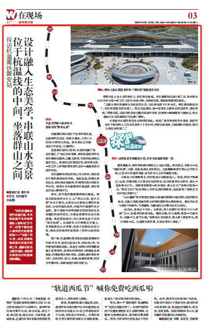 “昨天杭温高铁终于试运行啦,今天我就迫不及待地带着家人到车站‘打个卡’,记录下磐安进入高铁时代的重要时刻……”这是7月31日,在杭州高铁完成首次试运行的第二天,温都记者北上磐安站时,当地群众傅老伯对杭温高铁的期盼。