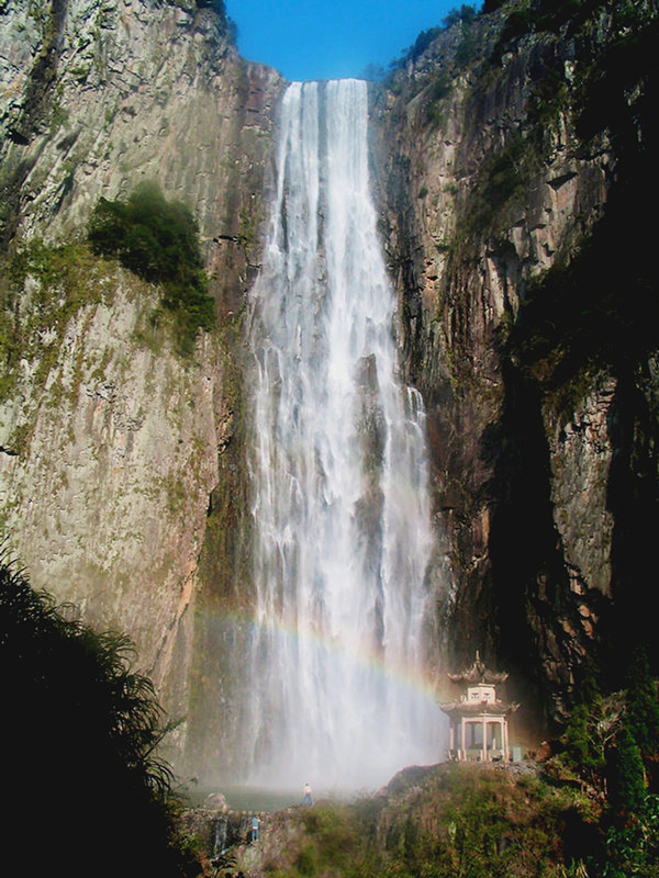 一漈百丈高,高达207米,宽30余米,素有“天下第一瀑”之称。三面绝壁如削,仰观绝壁直插云天:俯瞰壑底,如见地狱,惊心动魄。位于南田山南向边缘,汇福地南田溪涧流水,从百丈悬崖绝壁倾泻而下,水天相接,雪雾齐飞,滚珠泻玉,烟虹变幻,瀑声雷惊十里之外,成旷世奇观。刘基观瀑诗云:“悬崖峭壁使人惊,百斛长空抛水晶,六月不辞飞霜雪,三冬更有怒雷呜”。