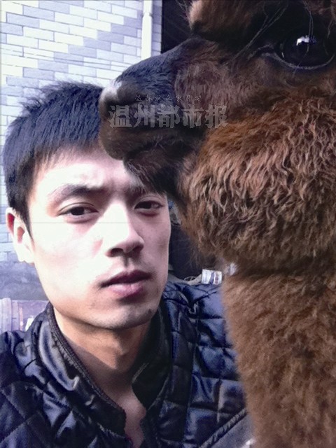 许冠国整天谈论着羊驼,照顾着羊驼,他的QQ相册和微信朋友圈里,却找不到一张他和羊驼的亲密合影,经记者要求,他发来唯一一张和羊驼的合影。“整天对着羊驼,看吐了。”小伙子把自己的喜好和生意严格区分。