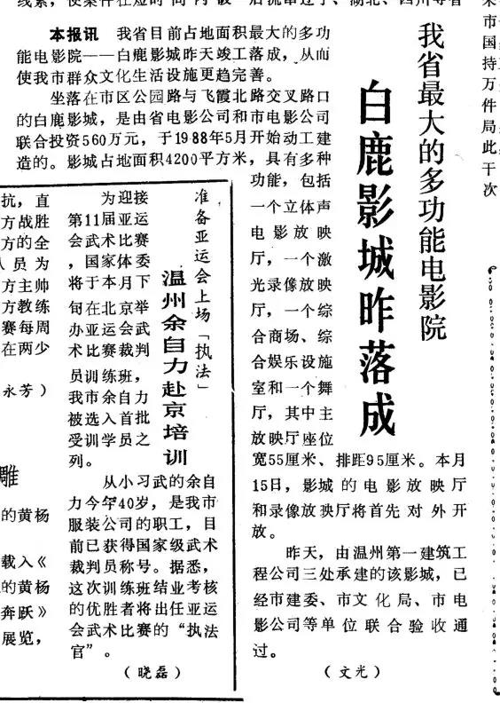 1990年3月15日,地处市区公园路、飞霞路、环城路交叉口的三角地带,建筑面积约6000平方米、拥有当时全省独一无二的观影大厅(800座)的白鹿影城正式对外营业。观众从各县市赶来“尝鲜”,当时排队买票的场面可谓人山人海。
