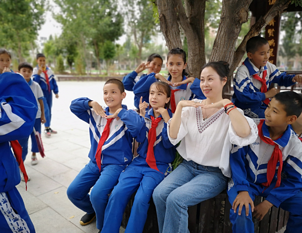 2019,我有了一批不一样的孩子。该怎样描述我们的初初相遇?我惊诧于你们的容貌,也惊诧于你们的热情,更惊诧于你们的汉语水平。你们有着高高的鼻梁,大大的眼睛,长长的睫毛,或深或浅的眸子,还有卷卷的发,每一个都那么漂亮。第一天,你们就给我取了个维族名字:阿依古扎丽——美丽的月亮。因为我的脸和月亮一样圆。第一节课,我们谈理想,我听不大懂你们的表述;第一天的作业,写一写开学第一天,我也看不大懂你们的表达。怎么办?那就从拼音开始教,课文一句一句带着读。你们第一次明白了读书要有轻重缓急,书写要有笔顺,你们画下了第一张思维导图,拿起了第一本课外书……;我,第一次有了一张一周二十节语文课的课表,第一次享受了教育的痛并快乐,当联系到捐赠给你们的1698册图书时,一如人民日报里的那位在喀什支教的小宝姑娘,我也成了世界上最幸福的女人。我的热情就像我二十三年前刚毕业一样,只是我把小学六年的爱浓缩成一年给了你们。于是,渐渐的,课堂上的我不用再唱独角戏;周考月考的分数远离倒数第一;电话里的你们几乎听不出是维族孩子。临近毕业的一天,教研室的老师借我们班上习作课——《我熟悉的人》。不约而同的,你们几乎都写了我。你们在文章里写着:“你是夜空中最亮的那颗星,掉落在凡间闪闪发光”,“你和我们就像鱼和水一样分不开,谢谢你给了我一生中最好的教育。”“我感谢你,我们永远喜欢你,老师,我觉得你在,我们班就是最幸福的班。”……坐下面听课的我哭得像个孩子。爱,是我最大的收获。教育就是付出爱,享受爱的过程吧。