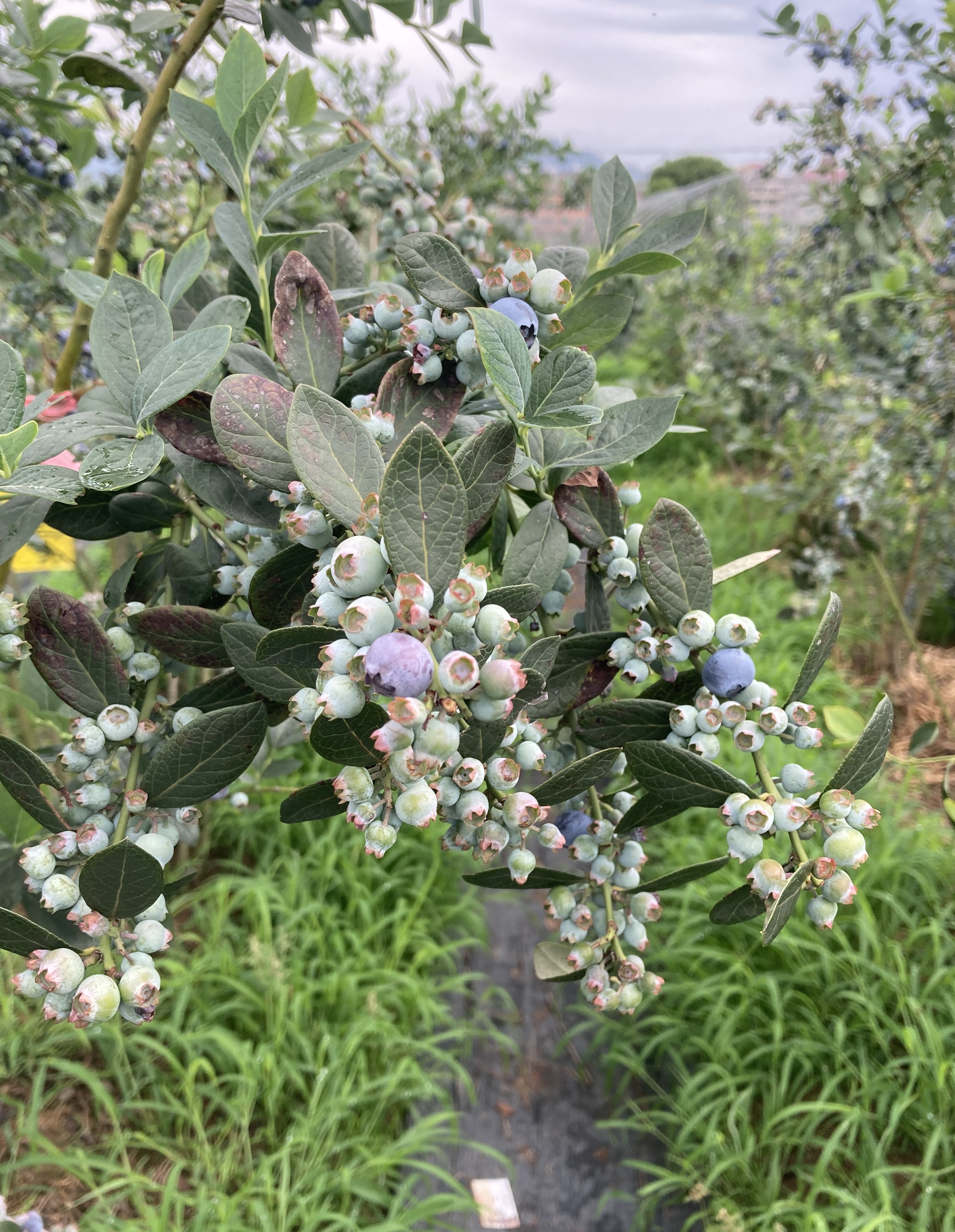 “你是来摘蓝莓的还是到村里的?摘蓝莓的话,车要靠路边停。”巨俊农庄蓝莓园老板周巨俊这样招呼道。这个蓝莓园占地50亩,有薄雾、奥尼尔、夏普蓝、兔眼等四大品种,属早熟品种的夏普蓝5月初就陆续成熟可采摘,而晚熟品种兔眼则6月中旬才可以采摘,整个蓝莓园的采摘期是5月初至7月中旬。