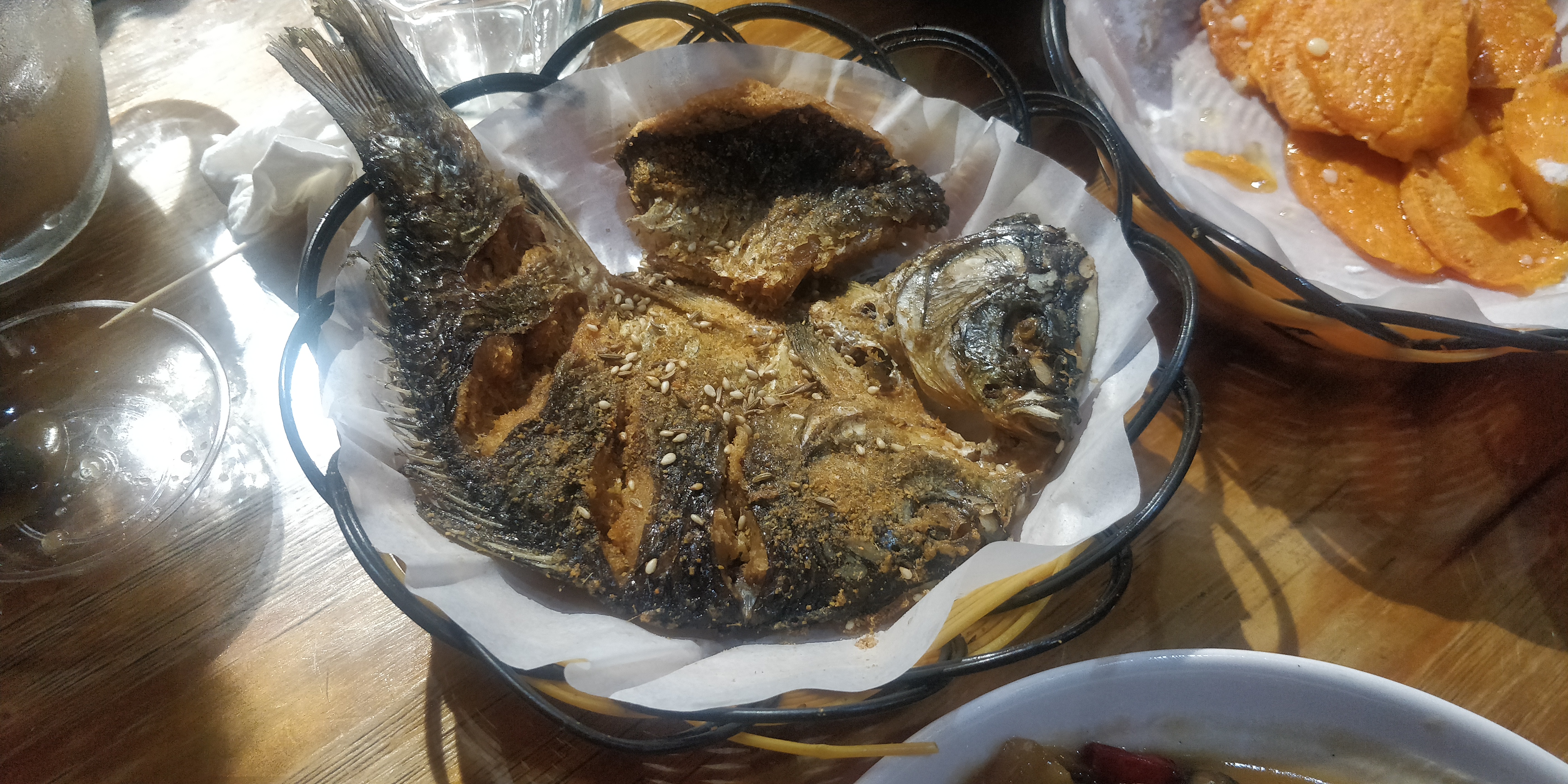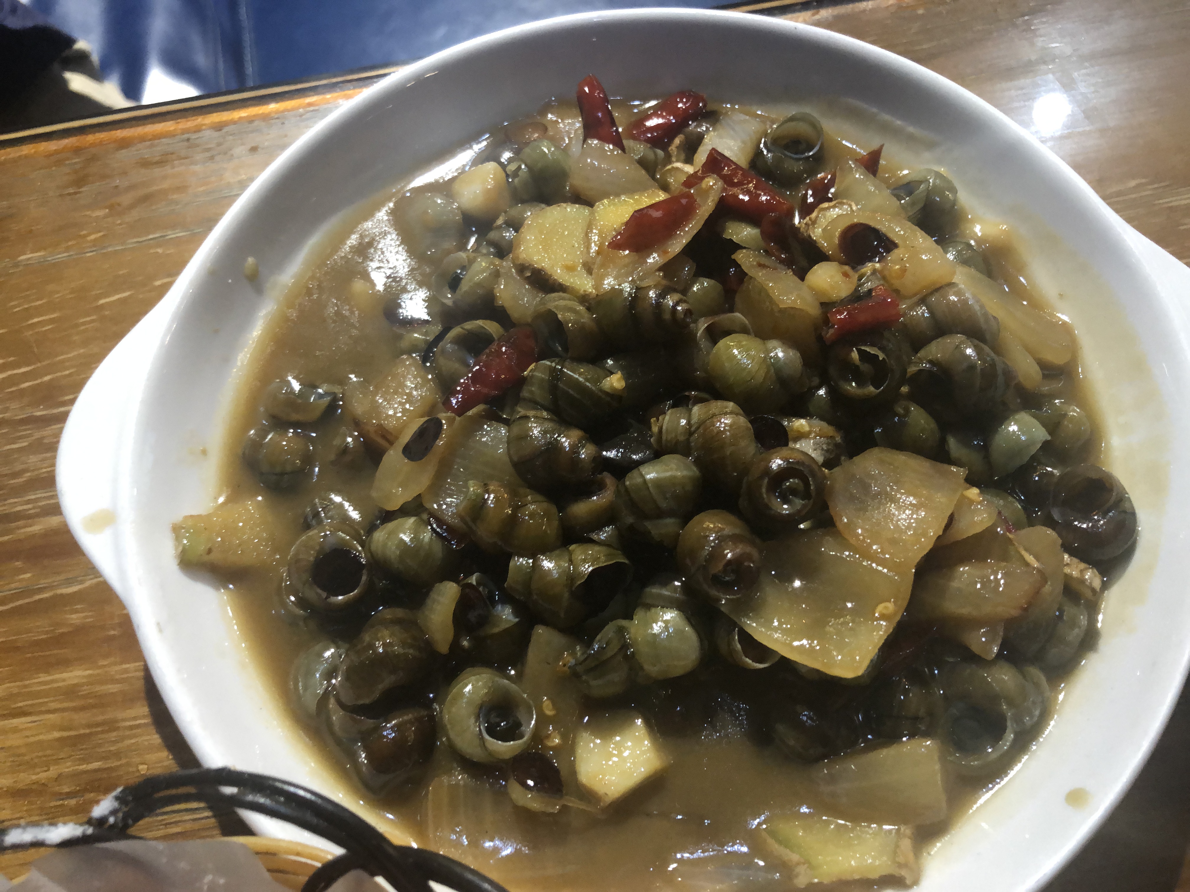 街口的码道泡泡,给爱吃宵夜的游客多了一个选择。现烤羊肉串、鲫鱼、花菜、地瓜、鸡爪配扎啤或杏仁腐,看得人口水直流。尤其值得一提的是,这家泡泡的烤鲫鱼和爆炒螺蛳真是太美味了。烤鲫鱼烤得恰到好处,肉嫩外酥,入口即化,连骨头都不用吐。爆炒螺蛳的螺蛳都是楠溪江本地的溪螺,干净无污染,听说鲜到可以直接煮了就能喝汤。