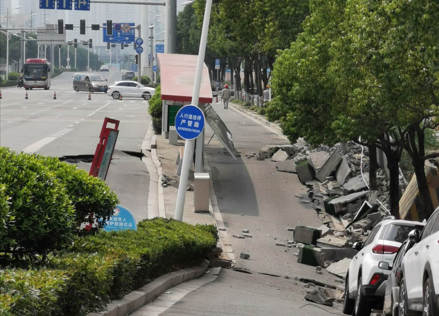 施工人员刘先生目睹了坍塌过程,上午11点左右,因为天气热,他坐在路边休息,突然就看见围墙倒过来,路面瞬间陷了下去,整个过程发生得很快,根本来不及反应。