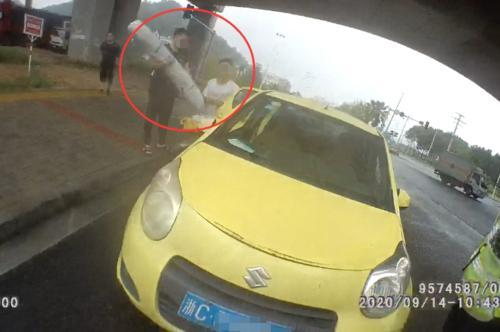 没多久,民警注意到一辆黄色轿车在警车后方停下,打起了双闪。民警一查,又是一辆年审过期的车辆。这时,前面查处的黑色轿车驾驶员张某抱着一卷皮革,跑去和黄色轿车司机交接货物。正欲移交东西时,民警将强制单递到了黄车驾驶员面前,对张某说:“东西不用给他带了,他的车也要暂扣!和你一样,车辆年审过期。”两位驾驶员面面相觑。