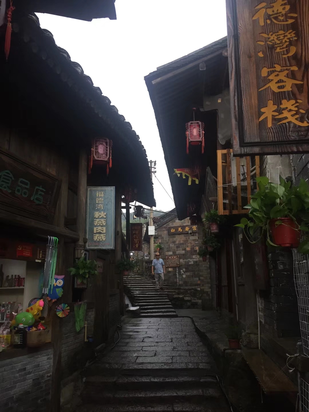 福德湾的风情是很妙的:房子顺应山势而建,长约200米宽约3米的街道,极为狭窄、陡峭,高高低低,弯弯曲曲的台阶会带着你一会儿上一会儿下,路旁是一家家民居与店铺,山岭每上一步台阶,街市也高一级台阶,街面最高处与最低处有近10米的垂直落差。在这里坐坐,偶尔会恍神,那些木窗、青石拦住了时光,这里有一种和别处迥异的美。