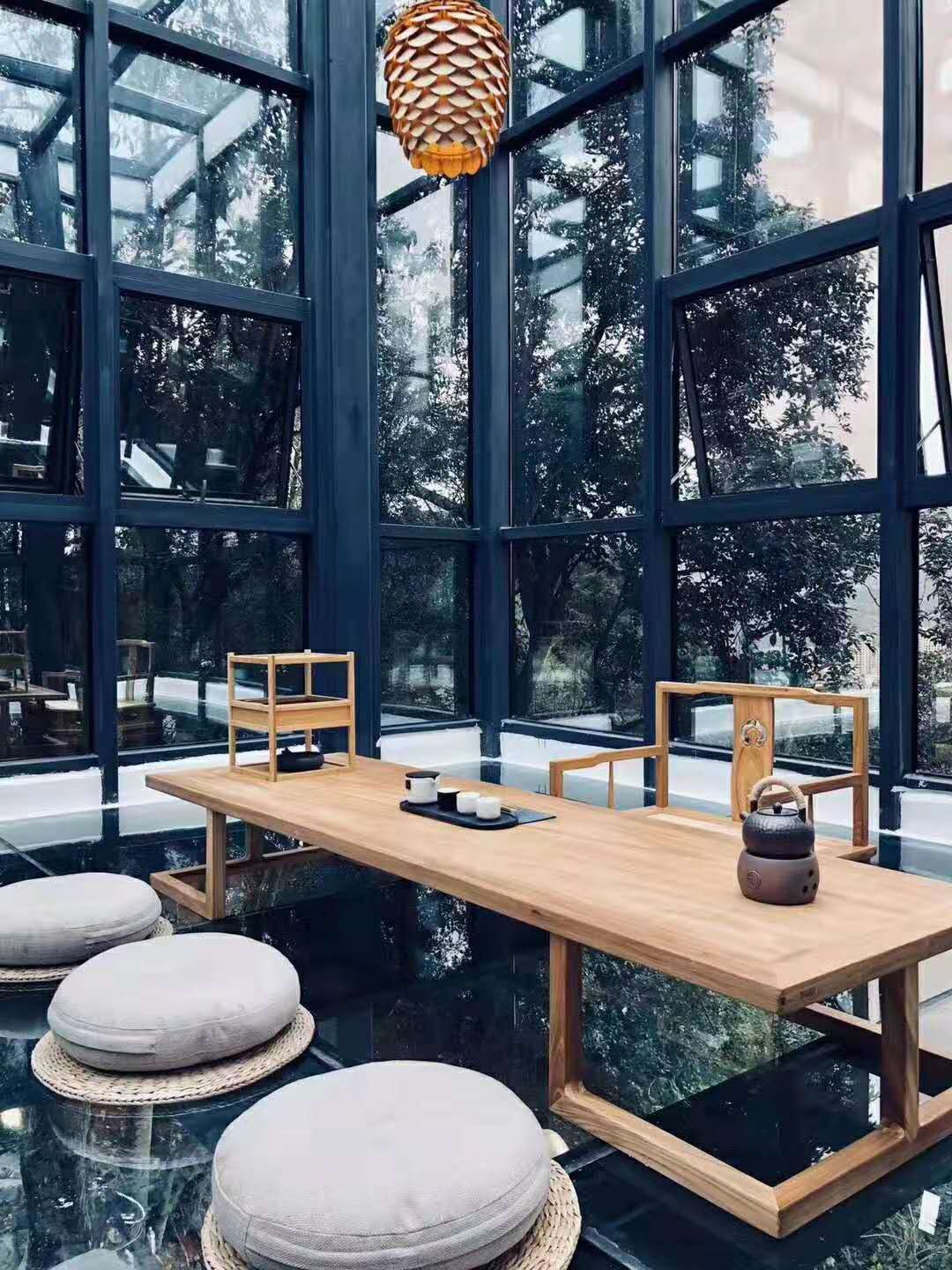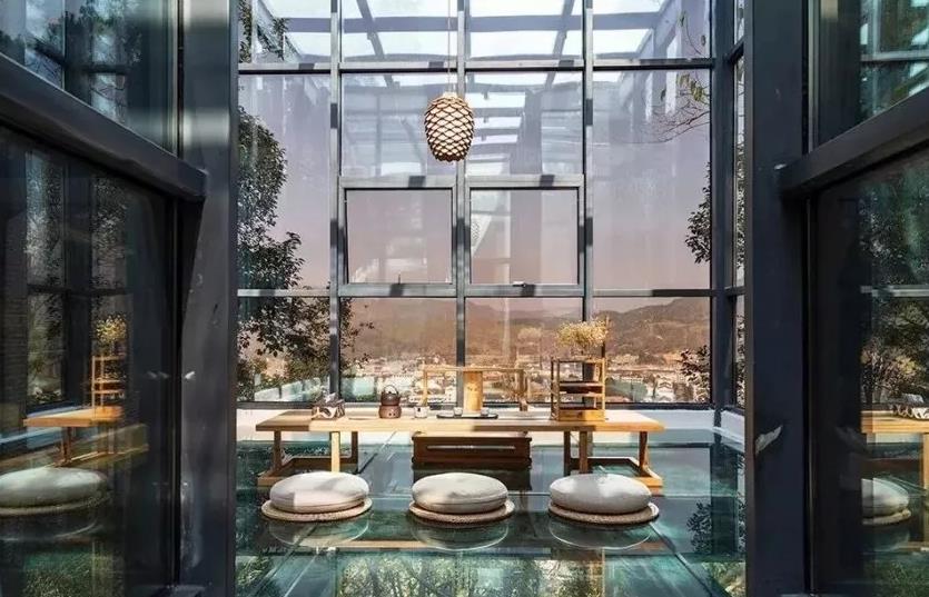 左舍的建材十分原始,原木为饰、石头做墙、水泥白墙默默留白,超大落地玻璃窗是每个房都有标配——四季间不停轮换的风情会让落地窗变成时时更新的画。
