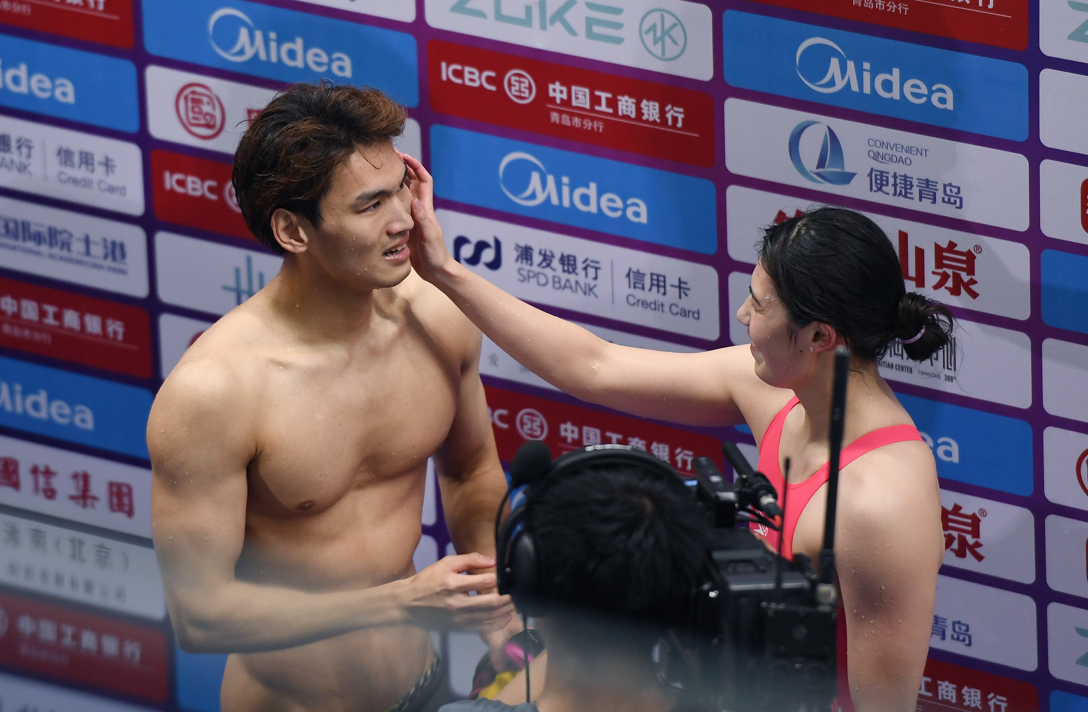 作为第一棒选手,徐嘉余的压力最大,此前他已经拿下100米和200米仰泳冠军,100米单项成绩超过他去年的世锦赛夺冠成绩。徐嘉余对于自己在接力中的表现表示满意,“以往我的接力成绩都比单项慢一点点,这一次我在前面每一枪比赛中都拼命的情况下,还游出接力52秒45的成绩(比单项快),我非常满意。”