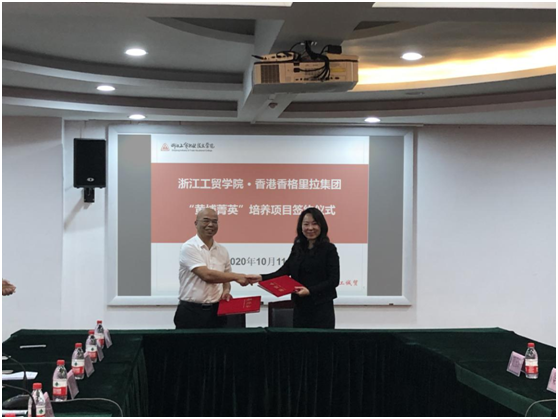 10月11日,浙江工贸职业技术学院与香港香格里拉集团合作的“黄埔菁英”培养项目正式签约,合作培养的对象是今天刚刚报到的该校现代管理学院2020级酒店管理专业新生,开启新生“招生即招工”“入学即就业”“学龄即工龄”的序幕。