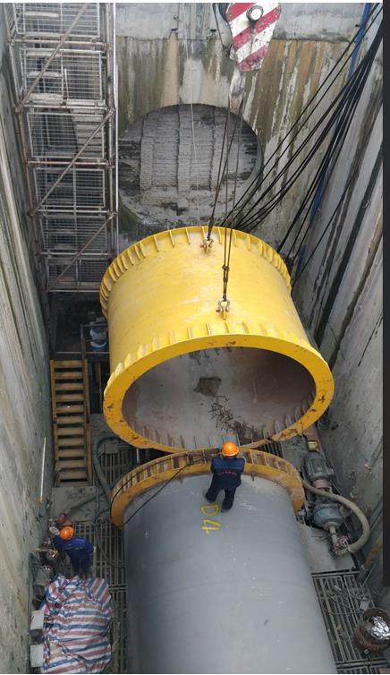赵山渡引水工程渡槽除险加固检修应急通道工程包括高楼、金潮港、张染-固前、沙门及桐溪-丁岙渡槽,分四个标段5个工区,项目总投资16211万元。已经完成高楼、金潮港渡槽加固项目 “张染-固前” 工区顶管作业施工。目前,正在实施的笫三标段沙门工区的渡槽检修应急通道工程顶管项目总长为426米,顶管口径为3米,是温州讫今为止最长最大的钢管顶管项目。前阶段该项目遇到了复杂的地质构造问题,参建单位全力已赴,技术攻关,夜以继日,连续作业,攻克了1.8米厚的接收井墙底基岩凿除难题,促使接收井精准下沉到位,为顶管作业扫清了障碍。