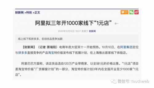 10月9日,名创优品上市前夕,阿里“1元体验店”宣布将在上海推出首家线下体验店。消息称阿里计划将在3年时间内,在全国开出1000家1元店。