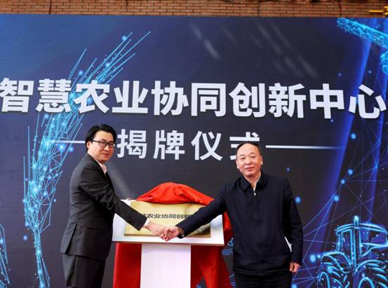▲中国工程院院士、国家农业信息化工程技术研究中心首席科学家赵春江院士(右1)和拼多多副总裁陈秋(左1)为智慧农业协同创新中心揭牌 (安舜/摄)