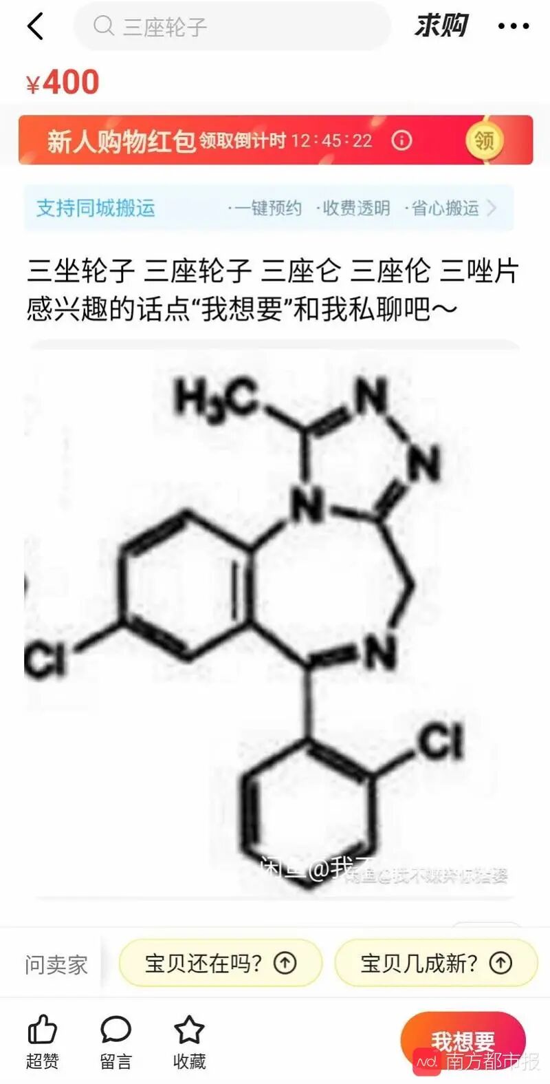 “你想要的,我懂”、“就是你想要的”,虽然做了技术屏蔽,某知名电商平台上仍有商家公开出售催情药,其中一些还打着“速溶”“无色无味”“猎色药水”的旗号。另一个二手交易平台,也可看到有4-羟基丁酸(即γ-羟基丁酸)产品售卖,显示商家位于广东。该平台上,一个卖三唑仑的商家把标题改为“三坐轮子”“三座伦”“三座仑”等,下方还展示出三唑仑的化学分子式。商品价格为400元。商家向记者发来照片,并称产品为恩华原盒正品,带激光镭射防伪标签,货源为“药店库存”;交易方式可以货到付款或者先款后货,货到付款只能发××快递。对于快递会不会检查的疑问,对方表示“报保健品就好”。商家进一步解释,此类药品“只是药店的禁售品,并不是快递物流行业的禁运品,原盒原装发过来是完全没问题的”。南都记者查询上述交易平台最新的公约和信息发布规定,毒品、色情低俗、催情用品、药品、医疗器械、非法服务等属于禁止发布的信息。10月中旬,记者再次搜索发现,该产品已被下架,商家“正被处罚”。律师: