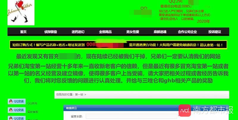 网页显示,与三唑仑的资料介绍相似的还有很多所谓迷幻药、失忆药。例如,商城中某款名为“蓝色妖姬”的迷药,自称产地为香港,“特点是持续时间长,适用于任何场合,3-5分钟见效,尝不出任何异味”,其后还附赠“解药”使用方法。“保证所有货品原装正品”,XX站商城在产品介绍之下标有这样的文字。记者通过网站上的QQ联系上售卖人员。以“失忆粉”为例,对方称有货,而且有很多种,并列举了几种产品名字。卖家表示,产品是从深圳发货,快递完全没问题,安全放心。在该网站上,也标明了三四家快递公司的名字,宣称指定合作、专人专送。在付款方面,该平台特意提醒“现在严打越来越严”,还专门撰写文章教用户如何交易“更放心”。南都记者注意到,网站还宣称,有其他平台冒充,很多客户上当受骗;如果客户对此反馈,商城会处理并奖励三唑仑等产品。网站的购物须知中,商家列出几点提示,所售产品特殊、敏感,“不得将产品用于非法用途,否则一切后果均与公司没有任何关系”“不要试图打听公司地址”等。对此,商家还进一步辩解,这些产品是双刃剑,“就像枪支一样,可以杀人,也可以救人”。目前,该网站的访问量已超过667万人次,南都记者随即向公安部的“网络违法犯罪举报网站”对“第一站商城”平台进行举报。截至发稿时记者查询举报进度,收到的反馈是:公安机关已对线索开展侦查工作。QQ、贴吧、微信: