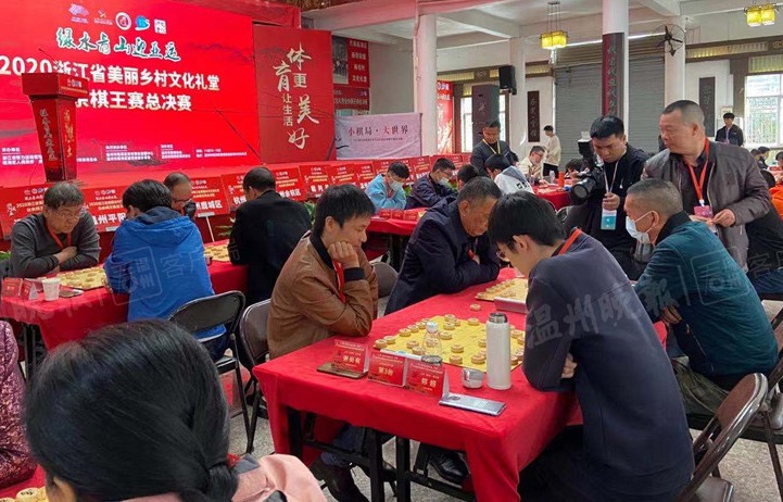 11月14日,“浙里棋王”2020浙江省美丽乡村文化礼堂业余棋王赛总决赛在瓯海杨宅村文化礼堂开幕,来自全省各地的21支队伍140多名运动员参赛。