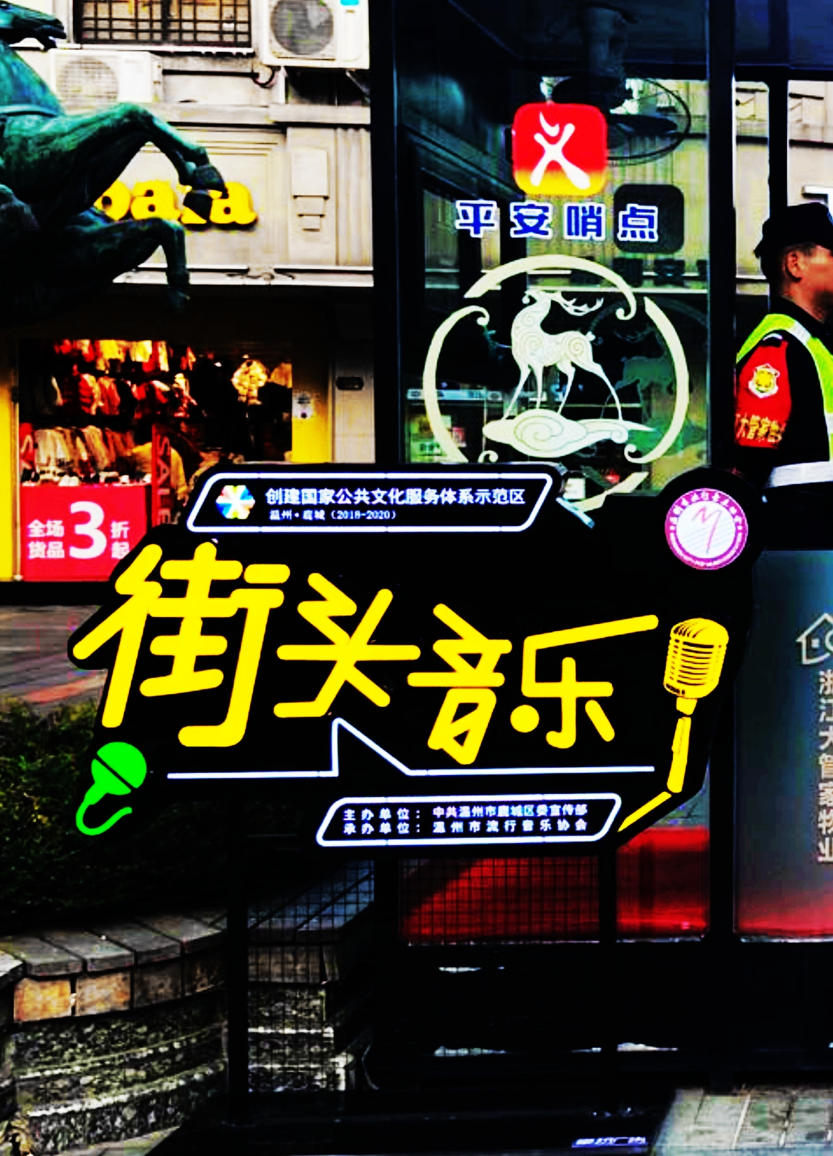 “街头音乐”由鹿城区委宣传部主办、温州市流行音乐协会承办。协会负责街头艺人报名、审核、颁证、报备等一系列程序,让“街头艺人”持证上岗,成为正规合法的街头表演者;并选址五马街,为艺术表演团队免费提供电源,统一放置“街头音乐”LOGO灯箱;表演者所需音响、乐器等,自行准备;每晚表演时间为19:00至20:30;在试行期间,“SY”“自由巴士”“36.5度”“ECHO”四支乐队轮流表演。