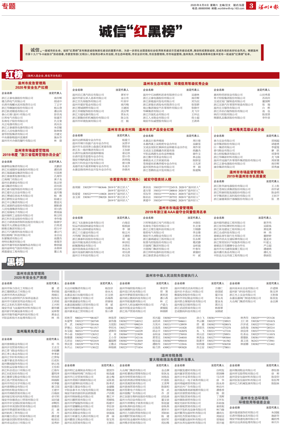 2020年“8.8诚信日”红黑榜