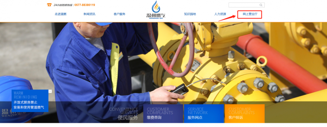 温州市燃气公司将线下营业厅可以办理的所有业务