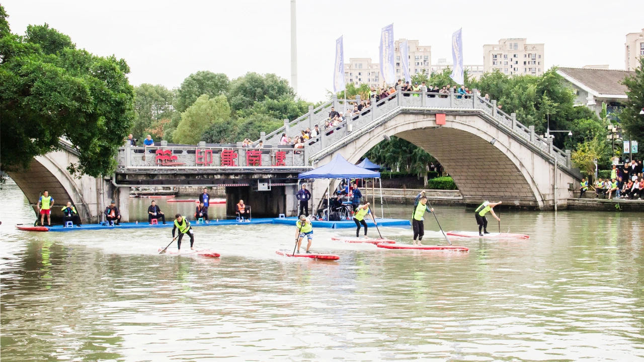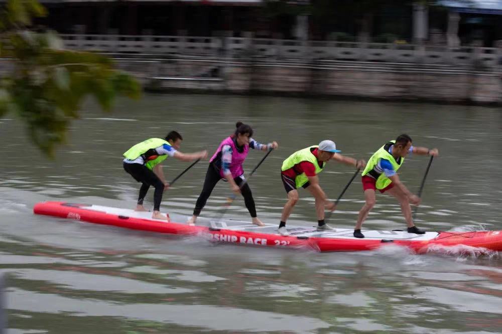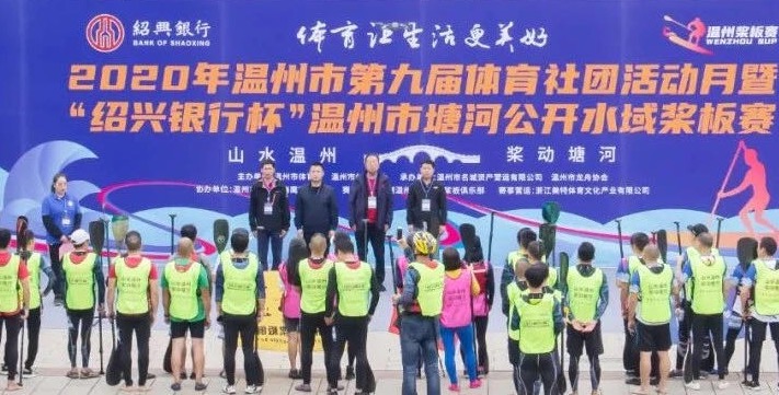 11月22日,2020年温州市第九届体育社团活动月暨“绍兴银行杯”市塘河公开水域桨板赛在市区南塘风貌街水域举行,共有123名运动员参赛。