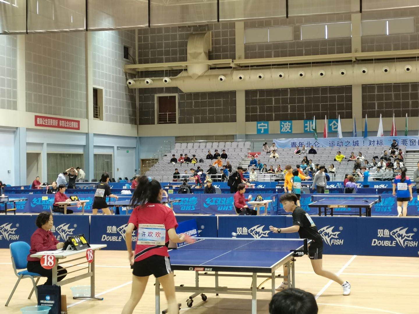 经过5天的激烈角逐,该校俞佳琦、韩晨奕、吴嫣、林笑丹卫冕女子团体冠军,俞佳琦、吴嫣组合获得女子双打冠军,何斌、吴毅刚、卓彦、翁钦盛获得男子团体第三名。此外,该校还获得混双、男双第四名,女单第七、八名的优异成绩。赛后,温职院代表队获得 “体育道德风尚奖”,俞佳琦获得“优秀运动员”称号,徐学慧获得“优秀教练员”称号,这是温职院参加该赛事以来的历史最佳运动成绩。