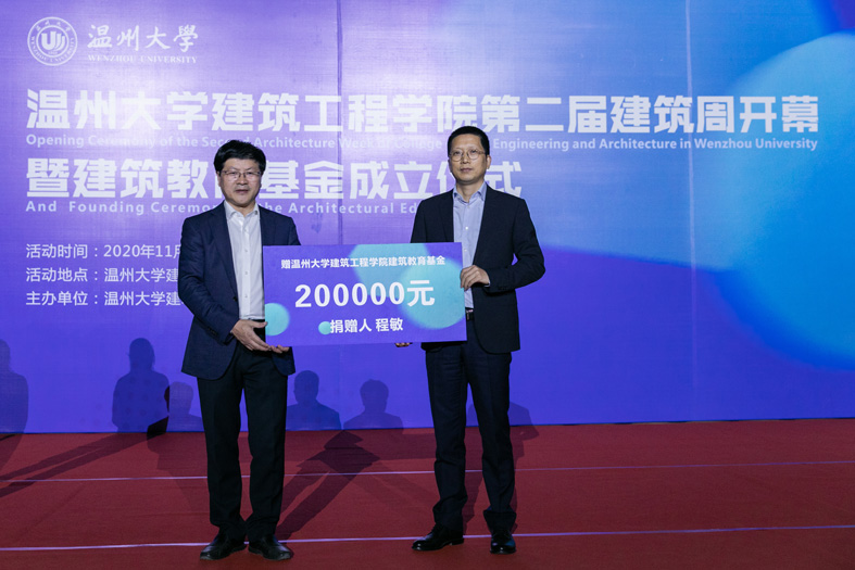 温都讯 近日,温州大学建筑工程学院第二届建筑周暨教育基金成立仪式举办。温州大学副校长蔡曙光、浙江佳境规划建筑设计研究院温州分院院长程敏、温大建工学院党委书记刘青松等出席开幕式。