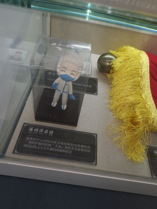还有一个手办,样子小巧精致,是温州市中心医院内科分泌医生徐赵釹制作的“穿防护服的医师”,寄托着对奋战在隔离病房的丈夫章仕淼的鼓励和思念。