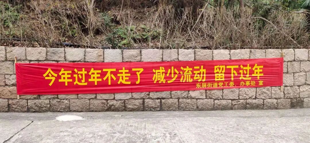 连日来,洞头区东屏街道组织各村社开展系列宣传行动,倡导新居民留洞过年,返乡人员就地过年,减少流动。