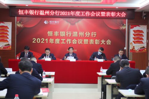 2021年2月9日下午,恒丰银行温州分行召开2021年度工作会议暨表彰大会。分行党委班子、各支行和部门负责人、2020年度受表彰单位和个人先进代表参会。