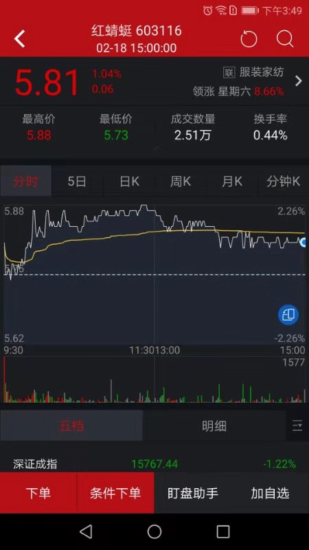 在2月9日钱金波完成转让2%红蜻蜓股份给儿子钱帆之后,红蜻蜓于10日报收于5.75元,上涨4.55%;同时,牛年春节首个交易日,红蜻蜓仍上涨,报收于5.81元,涨幅为1.04%,较半个多月前的5.25元历史低位已上涨超10%。