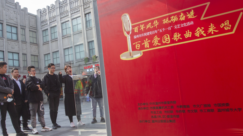 据了解,线下唱吧亮相五马街,对市民免费开放,是温州“百首爱国歌曲我来唱”活动的线下与市民互动项目,参与市民可在线下唱吧点唱机前唱歌并录制3分钟以内的视频,将作品发送至wendsj@qq.com。未到现场唱歌的市民也可通过抖音、快手、唱吧、全民K歌等平台进行录制,并发送到该邮箱参赛。参赛对象不限年龄,独唱、重唱、小组唱、合唱等表现形式均可。