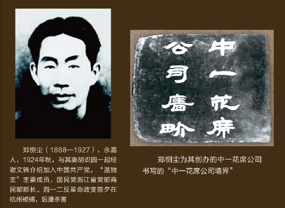 1924年9月,设在上海的中共中央派永嘉籍谢文锦到温州,筹建党、团组织。谢文锦是早期共产党员,与刘少奇等同批赴莫斯科学习。谢文锦来温后,广泛宣传全国革命形势与共产党纲领,燃起人们对社会主义的向往。他与当时温州的先进分子郑恻尘、胡识因夫妇联系。郑恻尘毕业于省立十中,立志实业报国,于1918年集资创办中一花席厂,并任总技师。花席厂产品远销南洋群岛,最盛时工人多达1500人,成为当时浙南最大的工厂。胡识因先后就读温州艺文女学、大同女学、杭州女子工艺师范学校,并曾在省内多所女学任教员。1920年,胡识因在温州创办新民小学任校长,并在女子师范讲习所任教。