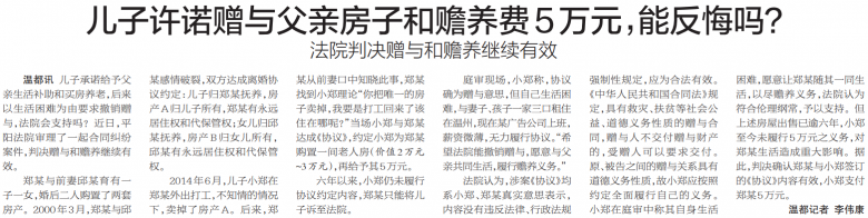 温都讯 儿子承诺给予父亲生活补助和买房养老,后来以生活困难为由要求撤销赠与,法院会支持吗?近日,平阳法院审理了一起合同纠纷案件,判决赠与和赡养继续有效。