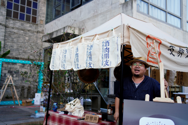 今天,虫二文化联合创始人李辛智在青灯市集现场布置他的酒铺 青灯市集供图
