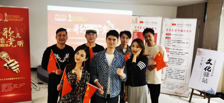 活动现场,歌声嘹亮,他们打开聚光灯,对着手机镜头,点播起爱国歌曲并进行录制,现场气氛热烈,一首首爱国歌曲让大家自豪感油然而生。
