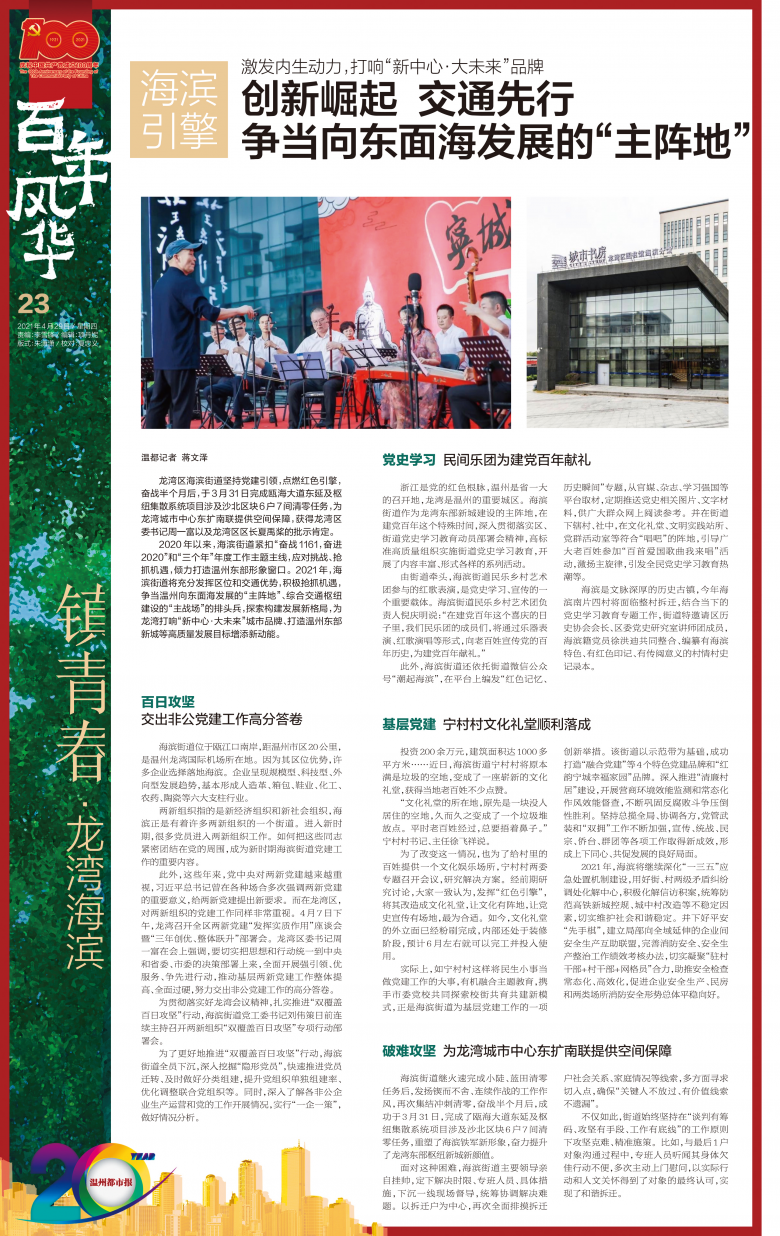 为庆祝中国共产党成立100周年,在温州都市报创刊20周年之际,本报全媒体推出《百年风华·镇青春》大型主题报道,聚焦乡镇街道的求实之风、创新之举,展现其不断提升的魅力、活力和实力。