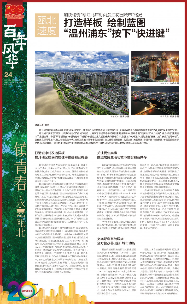 为庆祝中国共产党成立100周年,在温州都市报创刊20周年之际,本报全媒体推出《百年风华·镇青春》大型主题报道,聚焦乡镇街道的求实之风、创新之举,展现其不断提升的魅力、活力和实力。