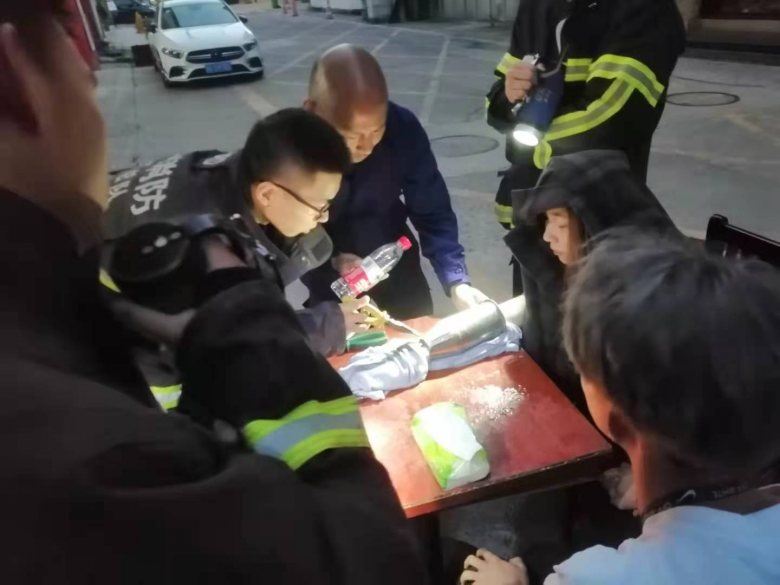 温都讯 5月3日凌晨4点,一辆小轿车慌忙驶入鹿城区黎明路消防站请求救援。原来一女子醉酒误将小臂卡在一截不锈钢管道内,自己和朋友尝试各种方法都无法将手取出。无奈之下,只好凌晨到站求助消防指战员。