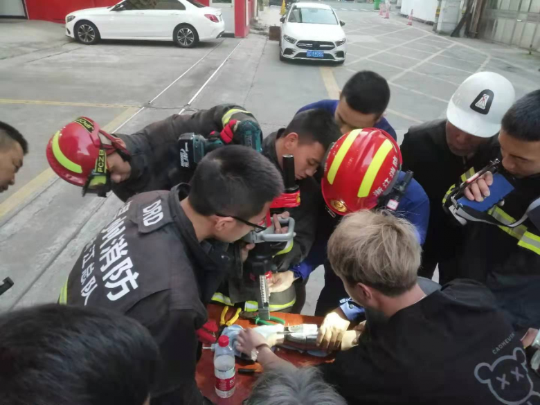 经消防指战员仔细观察,决定先用磨光机在管道上切割出2条缝隙,再用电动剪扩钳扩张管道,最后以洗洁精做润滑剂成功将该女子的手臂取出。救援任务从凌晨四点持续到天亮,终于脱困的女子感激地向消防救援人员连连道谢。消防部门温馨提醒广大人民群众在享受假期的同时,也要将生命安全牢记心中,平稳快乐的过五一假期。