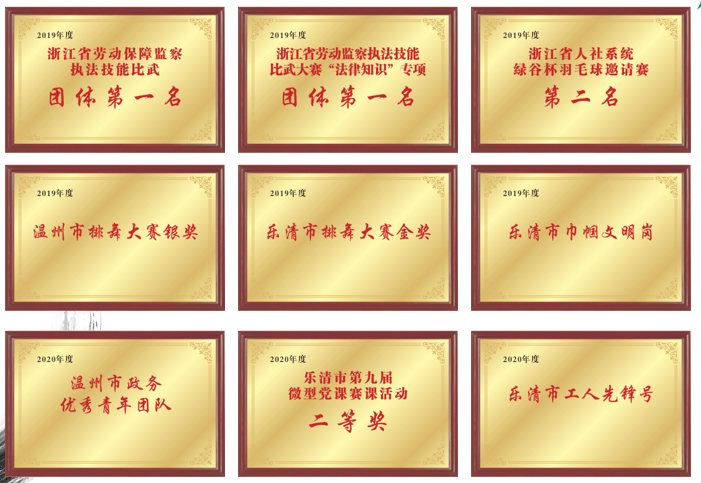她们一直本着“便民、规范、优质、高效”的服务目标开展工作,强化创建氛围,锤炼自身,专精业务,关注公益,逐渐形成一支勤学习、懂业务、优服务、乐奉献的人社娘子军,先后荣获“2019年浙江省劳动保障监察执法技能比武团体第一名”、“浙江省劳动监察执法技能比武大赛“法律知识”专项团体第一名”、“乐清市直机关第八届微型党课赛课活动二等奖”等多个荣誉奖项。