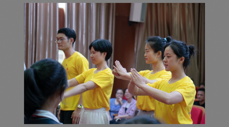 课堂中,“小黄衫”们给小学生讲授防霸凌小贴士,陪他们走出阴霾……这群“小黄衫”就是温州大学防霸凌——“小气包”成长志愿服务团队的成员们。“5·25”心理健康日来临之际,温州大学“小气包”成长服务团的成员们再次来到有武“毅”之称的百年名校—温州市瓦市小学开展一堂别开生面的“共筑‘同心圆’,远离校园霸凌”的心灵武术课。“