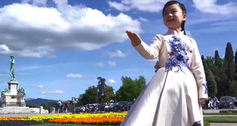 上图为意大利中意青年联合会推荐由叶梓默小朋友演唱《唱支山歌给党听》画面